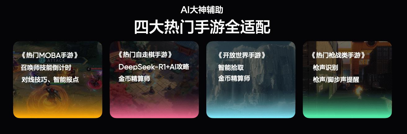 在游戏体验的优化上,真我GT7首发电竞抢网芯,大幅提升Wi-Fi的上下行能力,实现超强抢网、超强穿墙、超远连接效果。同时,首发AI信号追踪技术,可自动调节天线信号方向捕捉强信号,在弱信号场景下游戏时延降低12%。此外,全新升级的AI大神辅助,除支持《王者荣耀》《金铲铲之战》《原神》等主流手游外,还新增《和平精英》枪声识别功能。超神一键连招、游戏4D振感、游戏专属内存Pro等功能也一应俱全,为玩家带来全方位的优质游戏体验。