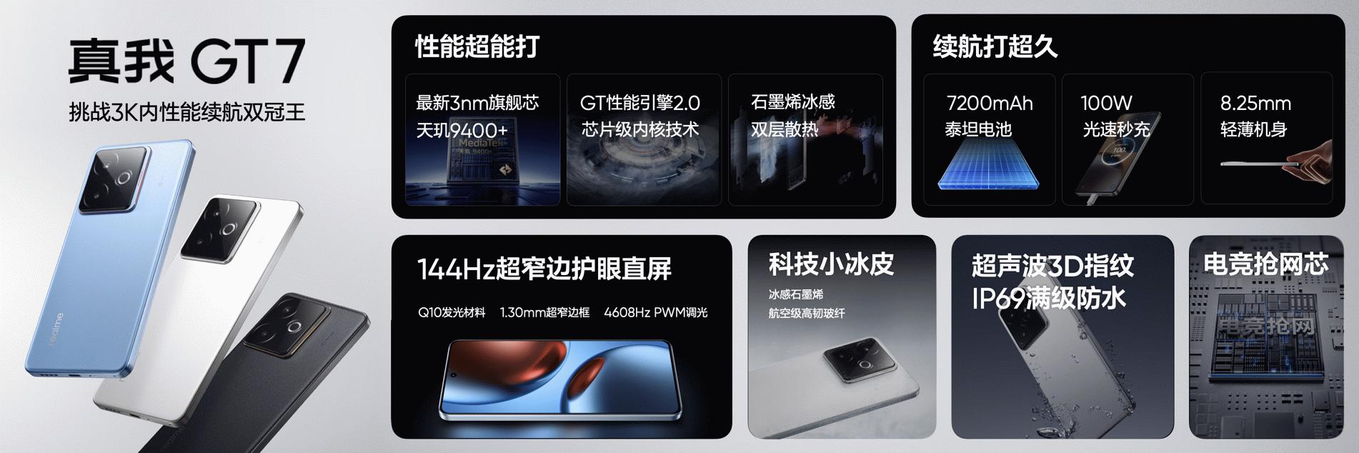 凭借3nm旗舰芯天玑9400+、7200mAh+100W续航组合等卓越配置,真我GT7成为当之无愧的“性能续航双冠王”。