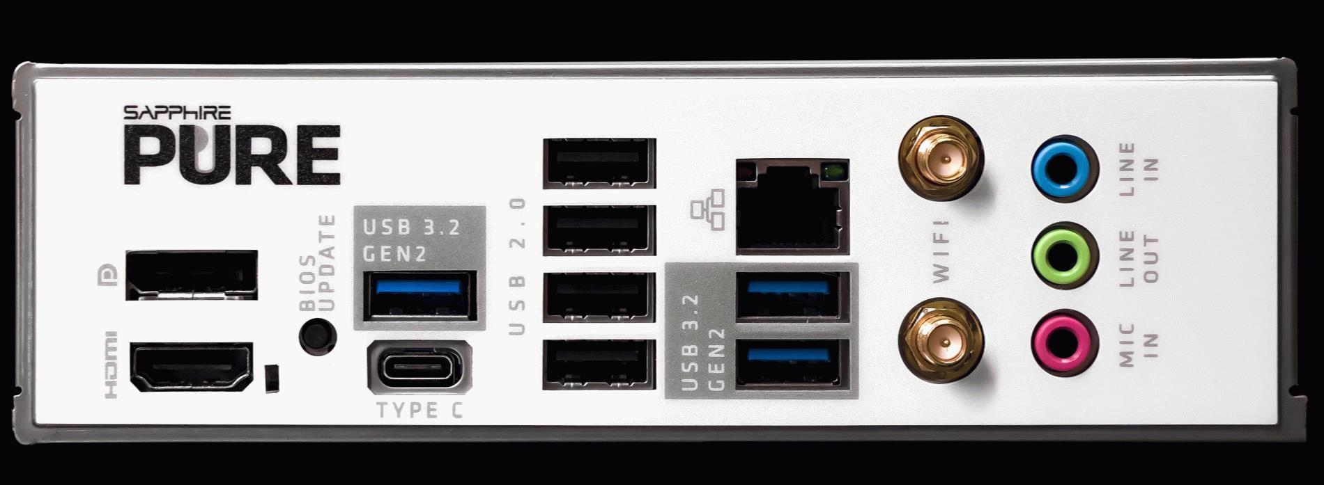 蓝宝石 PURE 极地 B650M WIFI主板采用了前后双Type-C设计,后置Type-C接口可支持至高10G速率。主板前置提供3个5V ARGB、5个风扇接针和一个12V RGB接针,方便用户打造新一代“海景房”。后置接口上,蓝宝石 PURE 极地 B650M WIFI主板配备了一组DP接口和HDMI接口,支持双显示输出。同时,提供了4个USB 2.0接口、4个10G USB接口、一个2.5G有线网口以及支持Wi-Fi 6和蓝牙5无线传输,满足用户多样化的连接需求。