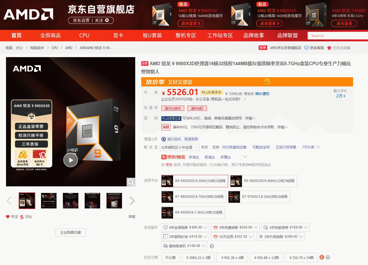 目前AMD 锐龙9 9950X3D处理器在京东自营旗舰店的报价是5599元,限时优惠券可以领取,京东PLUS会员到手更加优惠。成为京东旗舰店会员还有首购返666京豆和积分抽大奖活动。AMD 锐龙9 9950X3D处理器目前现货满满,价格也非常稳定,之前苦于买不到的DIY玩家们现在直接下单吧。相信 AMD 锐龙9 9950X3D处理器可以带给大家“无短板的全能体验”,它既是游戏玩家的终极神器也是内容创作者的生产力猛兽。