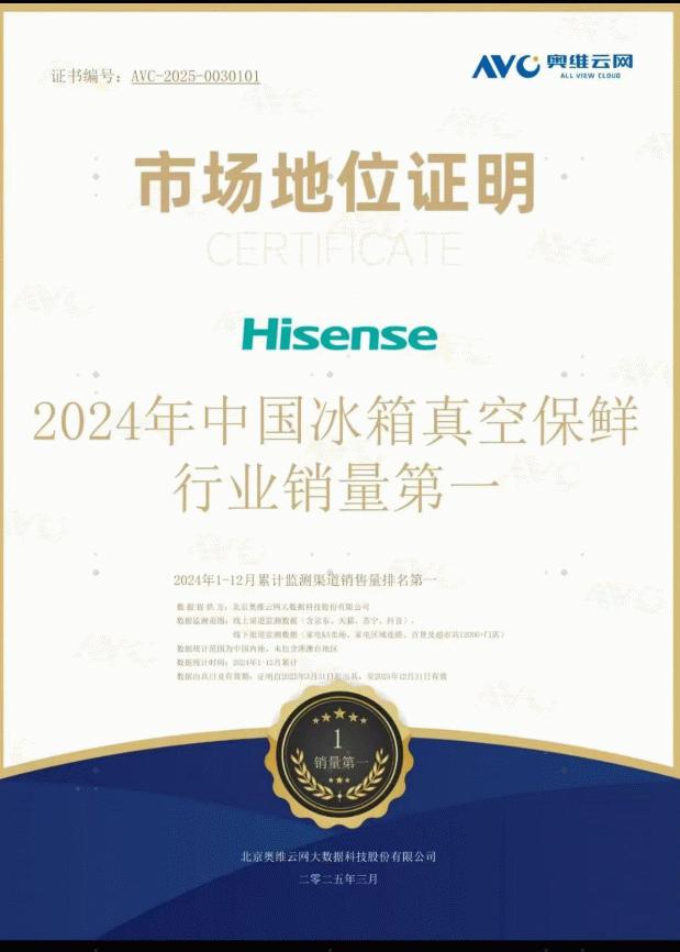 真空保鲜行业销量第一!海信冰箱海信冰箱定义高端保鲜新标杆