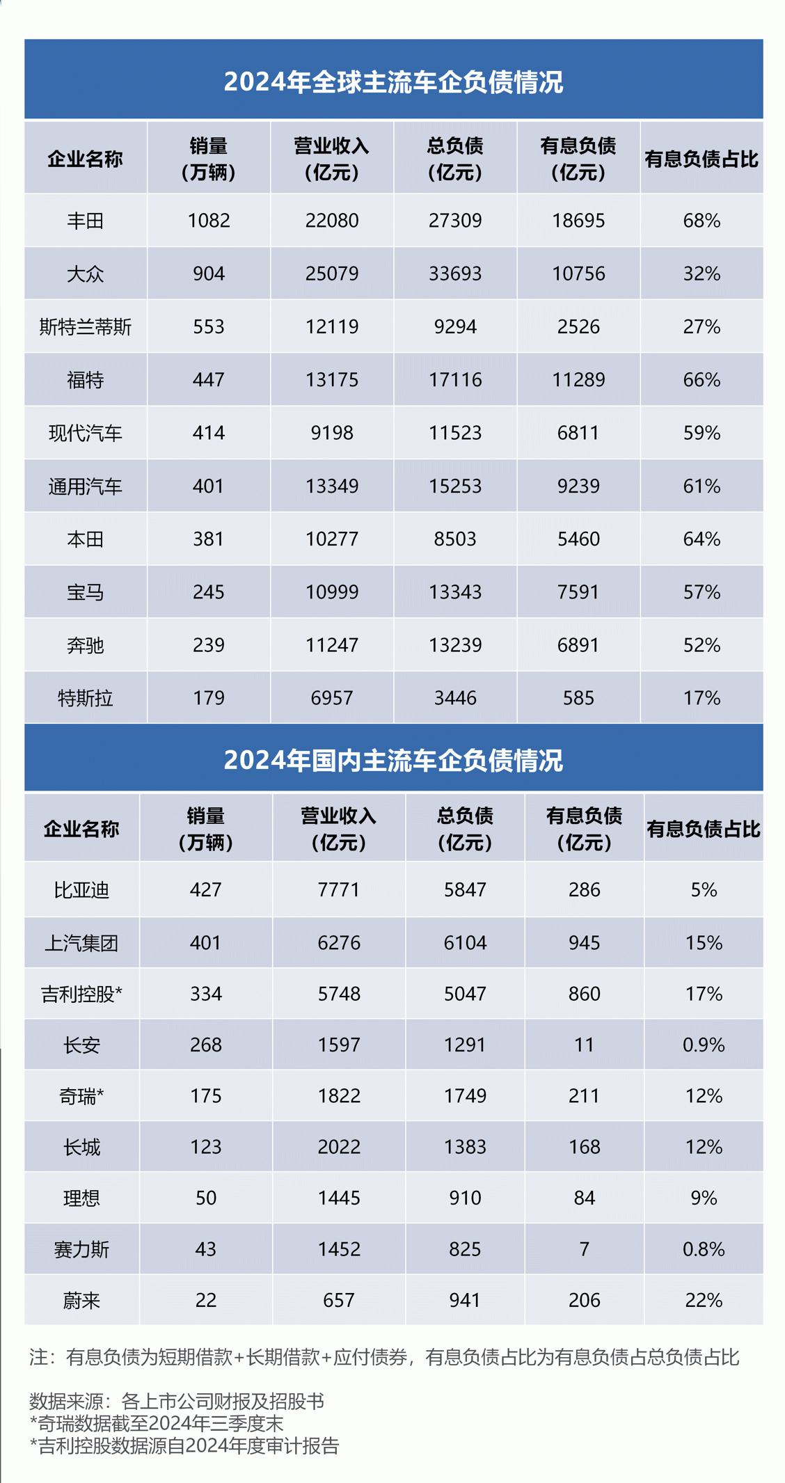 在有息负债指标上,相比国际车企,中国车企的数据更加健康: