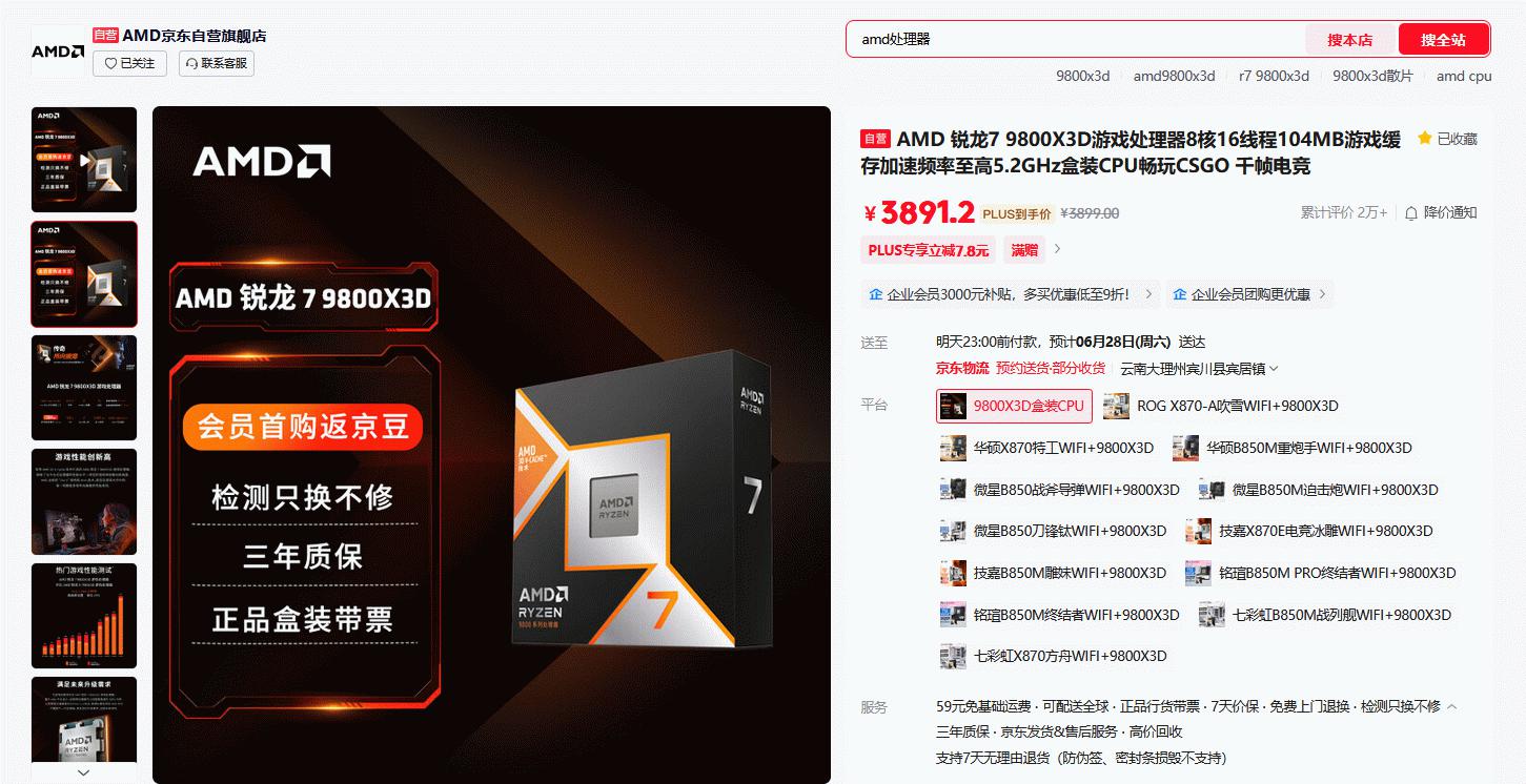 目前AMD 锐龙7 9800X3D处理器在京东自营旗舰店的报价是3899元,京东PLUS会员到手更加优惠。成为京东旗舰店会员还有首购返666京豆和积分抽大奖活动。AMD 锐龙7 9800X3D处理器在618大促之后还能有着如此优惠的价格,想要拥有千帧游戏体验的竞技玩家们真的可以随时下手了。