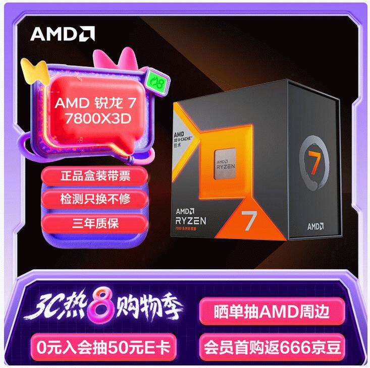 3C热8购物季神U好价!AMD 锐龙7 7800X3D热卖推荐