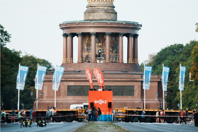 赛事期间,韶音以“YES TO MUSIC”为主题展开系列品牌活动。在9月18日至20日的马拉松博览会上,韶音通过巨型圆顶视觉装置吸引大量跑者驻足,现场展出全系列开放式耳机供体验试听,传递“柏林对音乐开放”的积极信号。比赛当日,韶音于柏林地标胜利柱下设DJ音乐加油站,用动感旋律为跑者注入能量,成为赛道旁备受关注的互动焦点。