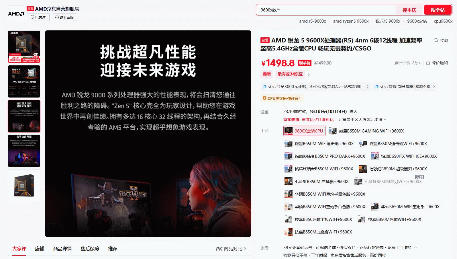 目前AMD锐龙5 9600X处理器在在京东自营旗舰店双十一促销预热阶段的最新报价是1499元,京东PLUS会员到手更加优惠。成为京东旗舰店会员还有0元入会抽100元E卡,首购返666京豆和晒单抽AMD周边等活动。目前AMD锐龙5 9600X处理器的价格算是日常售价,相对平稳,相信随着双十一促销的展开,这款产品的价格还是有继续调整的空间的,建议大家收藏加购,随时关注产品价格动向,在最合适的时期直接下单入手。