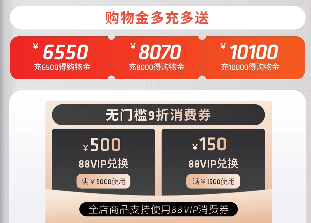 首先还是来介绍一下AMD(超威)官方旗舰店双十一会员福利,新老会员可享无门槛9折消费券,88VIP满5000立减500元以及1500-150元的限量优惠券。购物金多充多送,双十一享受30天价保,部分商品12期免息。接下来就开始推荐爆款主机,需要大家注意的是,这些产品的到手价格请以实际页面为准,很多福利活动限时限量,不清楚建议咨询下在线客服。