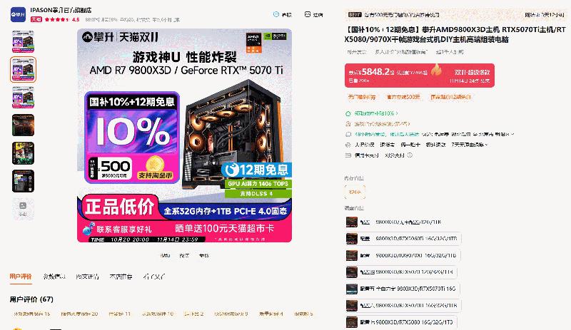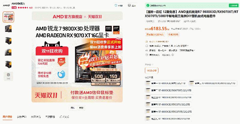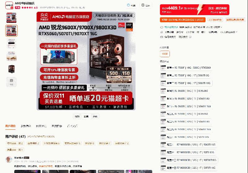 爆款整机价真香!AMD天猫官方旗舰店大促进行时