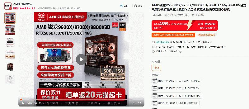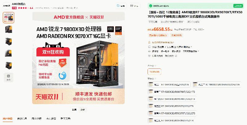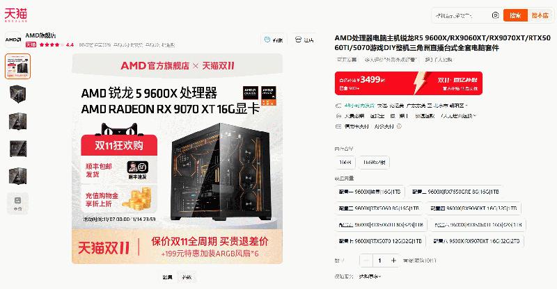 单品&整机领券超划算!AMD天猫官方旗舰店双十一狂欢购