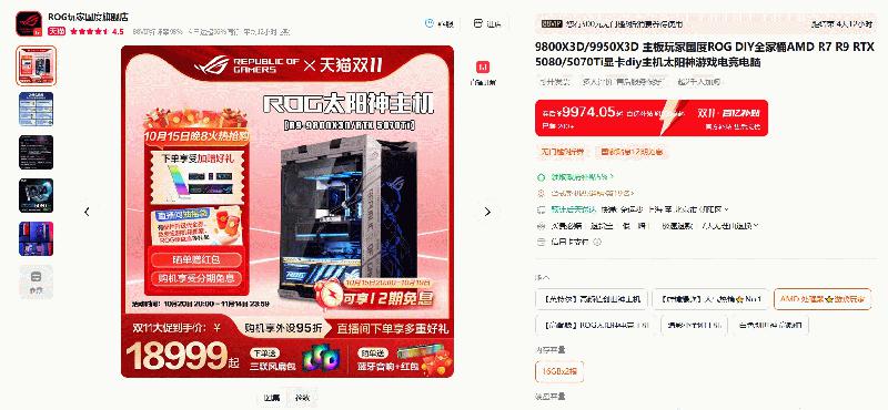 接下来这款同样来自华硕的整机,不过是ROG玩家国度旗舰店推出的产品,所以更加注重游戏玩家的整机主要采用的还是AMD锐龙X3D系列处理器。主板和显卡都是来自华硕的各系列产品,大家可以根据需要进行换购升级,特别值得一提的是机箱均采用了华硕ROG太阳神X601并且还能升级到焕新版,真正让这款主机做到了“神光所及 性能卓越”。这款整机目前活动很多,前往直播间下单可享多重好礼,晒单还有红包和外设好礼,具体规则可以直接咨询客服。