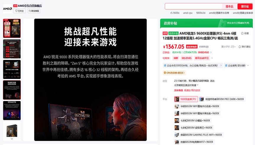 AM5战未来才是首选! AMD 锐龙5 9600X京东礼遇季推荐
