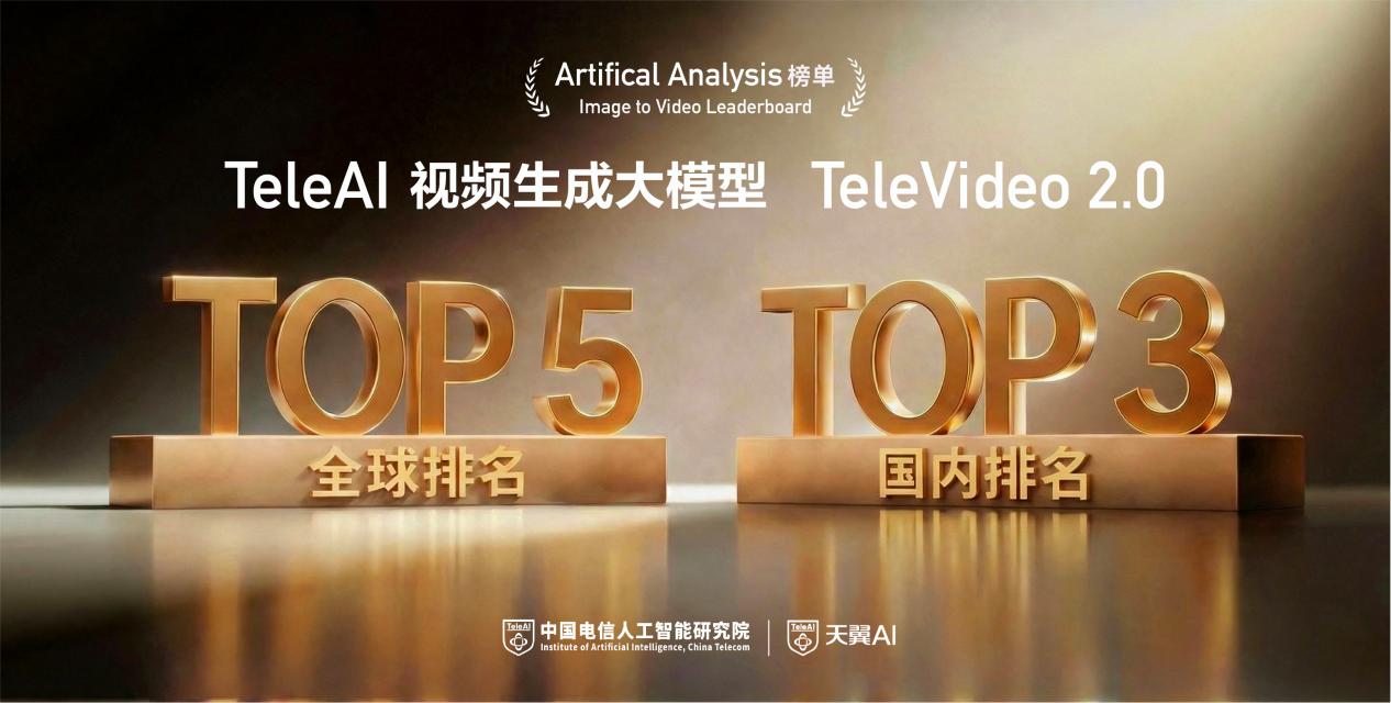 【小熊在线】近日,著名国际人工智能独立评测机构Artificial Analysis榜单更新,由中国电信人工智能研究院(TeleAI)和中电信人工智能科技有限公司创新打造的星辰多模态视频生成大模型TeleVideo 2.0在“Image to Video Leaderboard”(图生视频)排名中位列全球前五,国内前三。