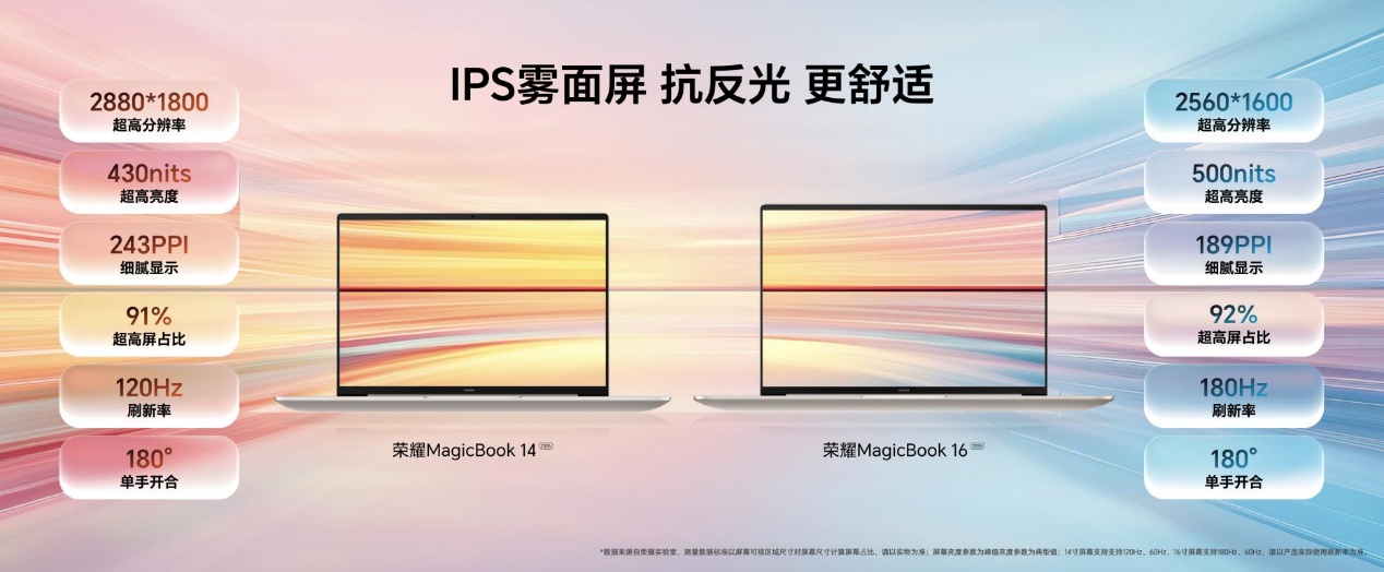 荣耀MagicBook 14|16系列2026凭借档位领先180Hz电竞屏及六重绿洲护眼技术,实现显示效果与护眼体验双重突破。全系搭载六重权威护眼技术,新增AI离焦护眼和舒视显示技术,硬件级低蓝光、类自然光等功能缓解用眼疲劳,无频闪设计适配暗光环境,实现全场景舒适用机,成为同档位兼顾实用性与舒适性的标杆。